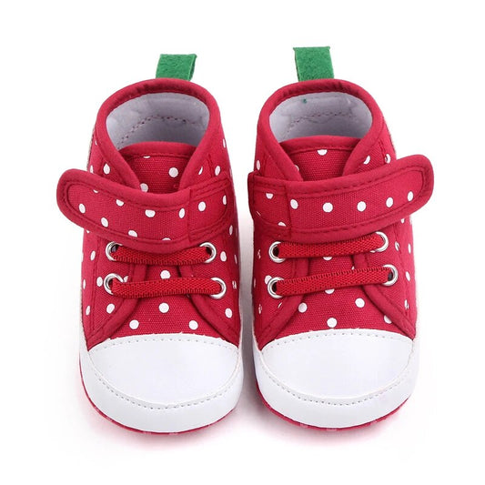 Baby Canvas Shoes Soft Cotton Anti-slip Toddler Prewalking Ankle Boots Cute Dots and Fruits Design Baby Casual Shoe High Quality